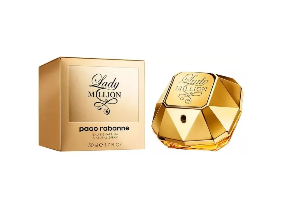 Lady Million de Paco Rabanne es una fragancia de la familia olfativa Floral Frutal para Mujeres. Las Notas de Salida son frambuesa, neroli y limón de Amalfi (lima de Amalfi); las Notas de Corazón son jazmín, flor del naranjo africano y gardenia; las Notas de Fondo son miel blanca, pachulí y ámbar.